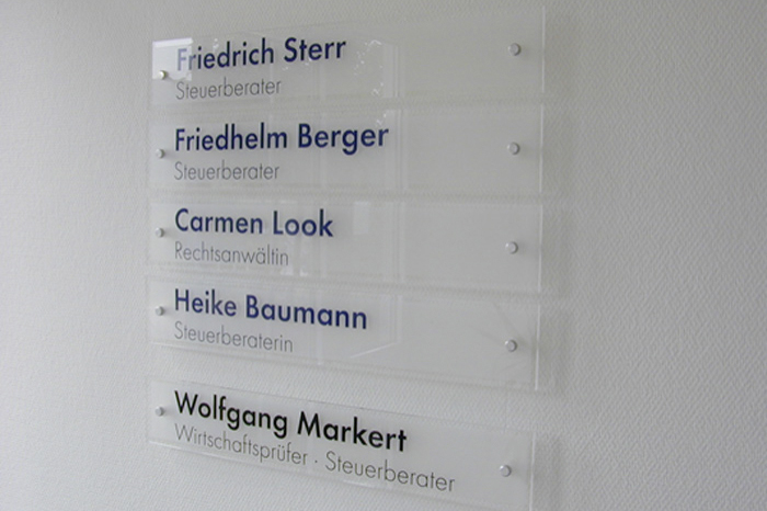 Eingangsschilder aus Plexiglas und Edelstahl